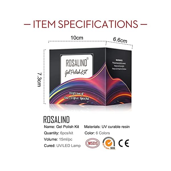 ROSALIND Esmaltes Semipermanentes para Uñas , Esmalte Pintauñas de Uñas en Gel UV Kit 6 Colores 15ML Fucsia y Rosa Gris…
