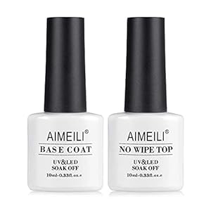 AIMEILI Base y Top Coat Semipermanente Esmalte Semipermanente de Uñas UV LED Gel Soak Off 10ML